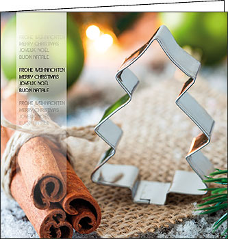 Sie sind hier: Startseite » Budget Weihnachtskarten » Grüne Weihnachtskarten Weihnachtskarte, Zimtgebäck, A5 quer Weihnachtskarte, Zimtgebäck, A5 quer Nur solange Vorrat.Format: 150 x 150Papier: weissOhne Eindruck Aktion war erfolgreich Das hat leider nicht geklappt. Warenkorb anzeigen Zur Kasse gehen Weiter einkaufen Einlageblatt: ohne Einlageblatt mit Einlageblatt weiss Couvert: ohne Couvert mit Standard-Couvert weiss Anzahl: Stk In den Warenkorb Weihnachtskarte, Frohe Festtage, A5 quer Weihnachtskarte, Frohe Weihnachten, A5 quer