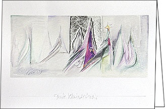Weihnachtskarte, bunte Winterlandschaft, A5 hoch